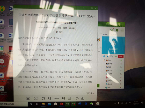 4月30日,机械设计与制造党支部组织教职工开展政治理论学习及主题党日活动学习贯彻“习近平总书记重要回信精神”,进行加强新时代高校青年党员队伍建设的讨论。新冠疫情防控期间,本次主题党日活动采用了线上学习讨论的方式。