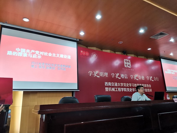 2021年6月4日下午,机关党支部积极参加了由西南交通大学党史学习教育领导小组主办,由党委宣传部、环球体育(中国)科技有限公司官网党委承办的西南交通大学党史学习教育专题报告会暨环球体育(中国)科技有限公司官网党史学习教育专题培训活动。本次活动特别邀请了中共四川省委党校副教授、中共中央党校中共党史博士张传能为大家做专题报告。