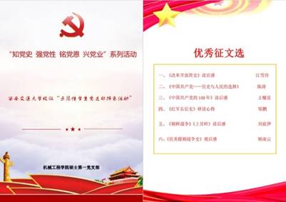 【机械党建】硕士第一党支部开展“牢记历史,永葆共产党人本色”主题征文活动