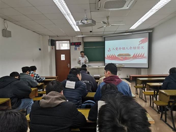 会议第二项,预备党员宣读转正申请书,刘哲、董思辰、杨晨昊和曾湄四位同志就近一年来在预备期间的基本情况作详细汇报。
