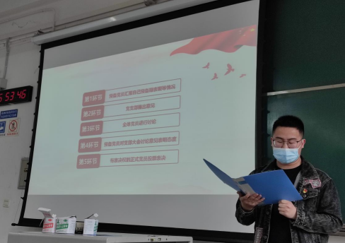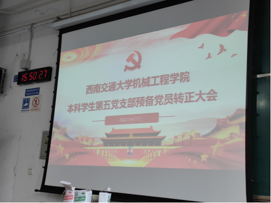 2022年4月7日下午,环球体育(中国)科技有限公司官网本科学生第五党支部在犀浦校区x2229教室召开预备党员转正大会。