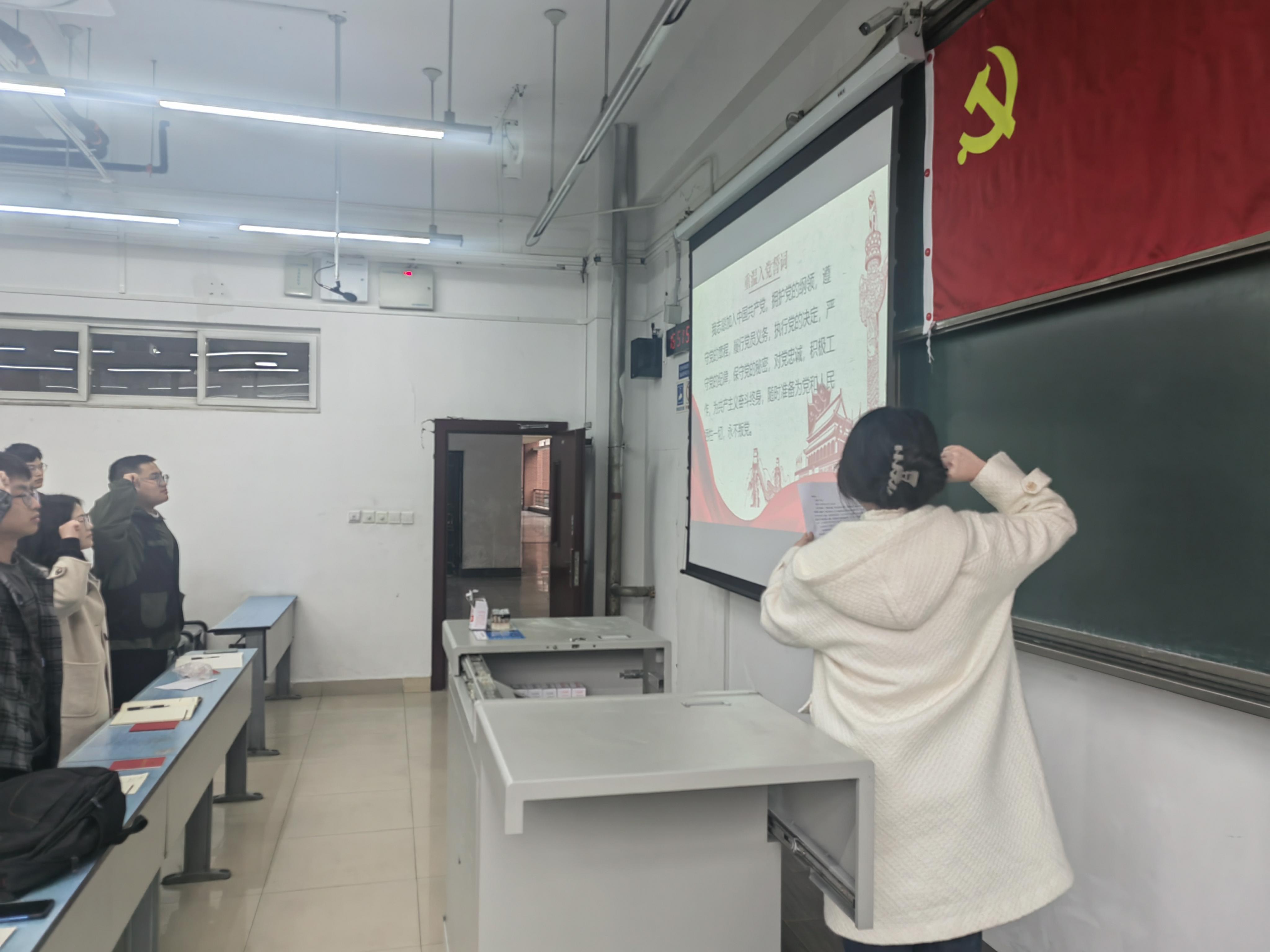 活动第三项内容,主持人带领大家重温入党誓词,号召党员同志坚定信念、不忘初心。