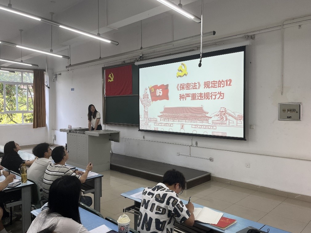 学习的第一项为了解国家安全、国家秘密和保密法等相关内容。并进行了防范泄密教育,对可能危害国家安全的行为向大家做出介绍,而后分享了几则大学生泄密案例,给与大家警示作用。