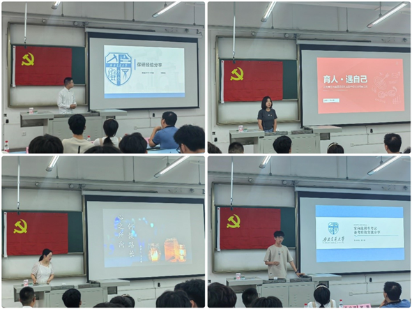 优秀毕业生党员同志从自身实际出发,结合考研、保研、就业、考公、选调生、西部计划等,去往祖国最需要的地方去奉献自己的青春力量,以实际行动践行初心、担当使命,充分展现新时代中国青年的新风貌,让青春在全面建设社会主义现代化国家的火热实践中绽放绚丽之花。并将自身学习备考经验分享给其他年级学生党员,传承经验和精神,展现了新时代学生党员的形象风貌,充分发挥了先锋模范作用。许多党员表示:“作为新时代的青年大学生,我们要做有理想、敢担当、能吃苦、肯奋斗的新时代好青年,为实现中华民族的伟大复兴贡献青春力量。”