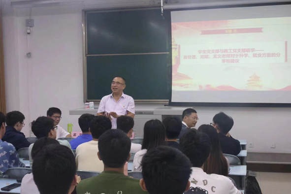 教工党支部结合本专业特点、历史发展、前沿动态,结合学生党员自身特点,从学习成长、职业规划、择业就业等方面为学生提供了建议:第一,无论未来选择什么,无论是升学还是就业,都要脚踏实地,保持初心;第二,机械专业拥有悠久的历史的长期的积淀,是需要大家不断学习和探索的,未来也希望可以继续学习和深造;第三,书本知识是学习的重要内容,同样实践也是获取知识的重要渠道,要亲自实践,不怕苦不怕累,多去基层锻炼,多去线下实地感悟,不断提升自我。