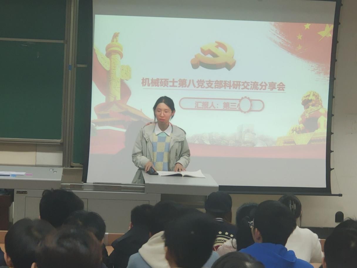 【机械党建】环球体育(中国)科技有限公司官网硕士第八党支部召开科研交流分享会