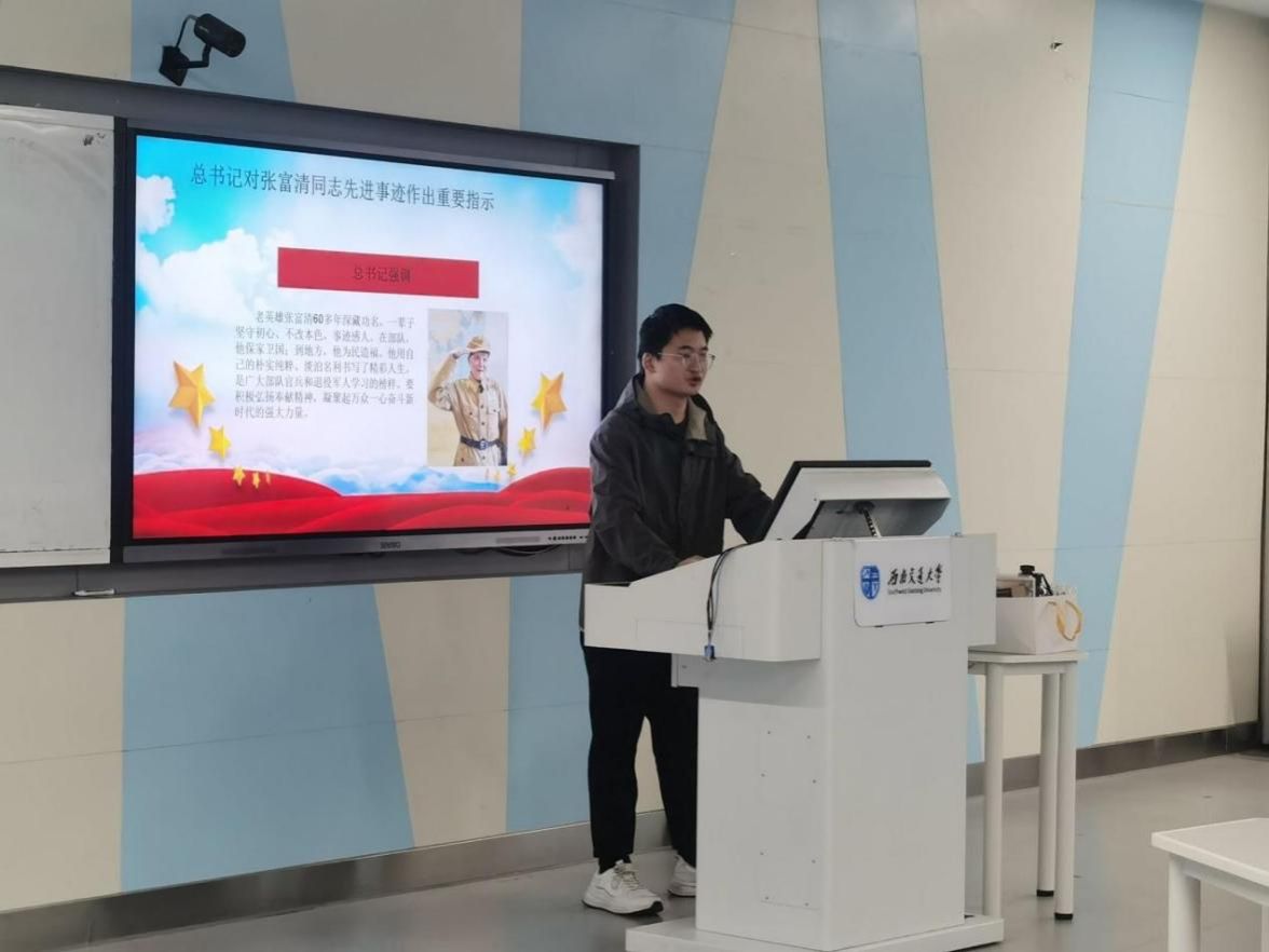 第四学习小组讲述了老英雄张富清的故事。老英雄坚守初心、淡泊名利、恪尽职守的事迹,深切地感受到了老英雄初心如炬,为国为民的奉献精神。