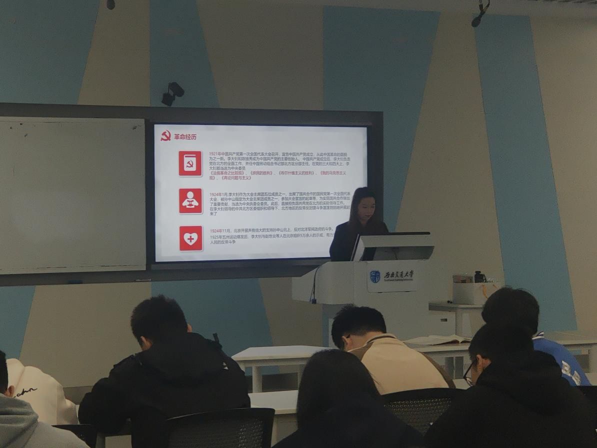 第五学习小组讲述了革命先驱李大钊的故事,李大钊同志不仅是一位伟大的革命者和战士,而且是20世纪初我国思想文化界的一位杰出人物。他留下大量著作、文稿和译著,内容涉及哲学、经济学、法学、历史学、伦理学、美学、新闻学、图书管理学等诸多领域,为20世纪中国的思想文化建设作出重要贡献。