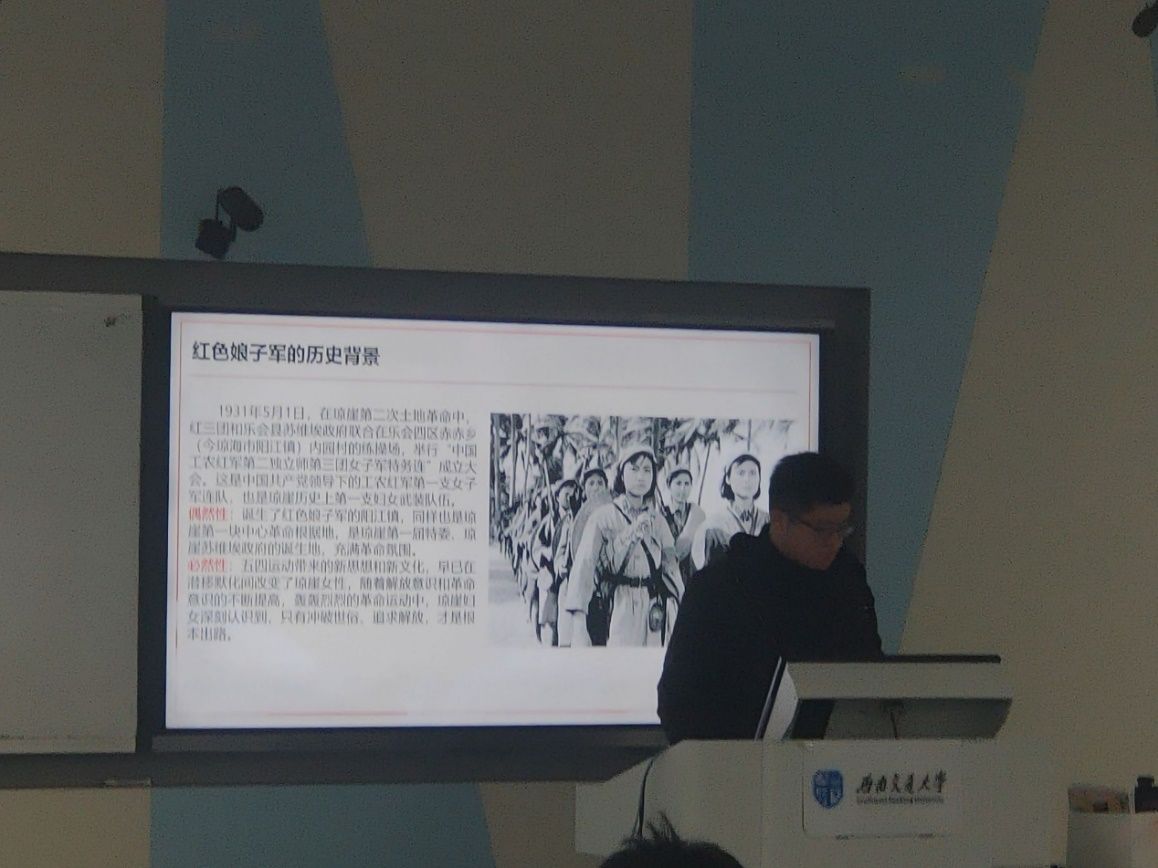 第七学习小组讲述了不朽英雄花红色娘子军的故事。这支在中国共产党领导下的妇女武装队伍,虽然只存在了一年多的时间,却成为琼崖革命史上的一个奇迹,中国人民革命斗争史上的一个创举,被誉为“世界革命的典范”。