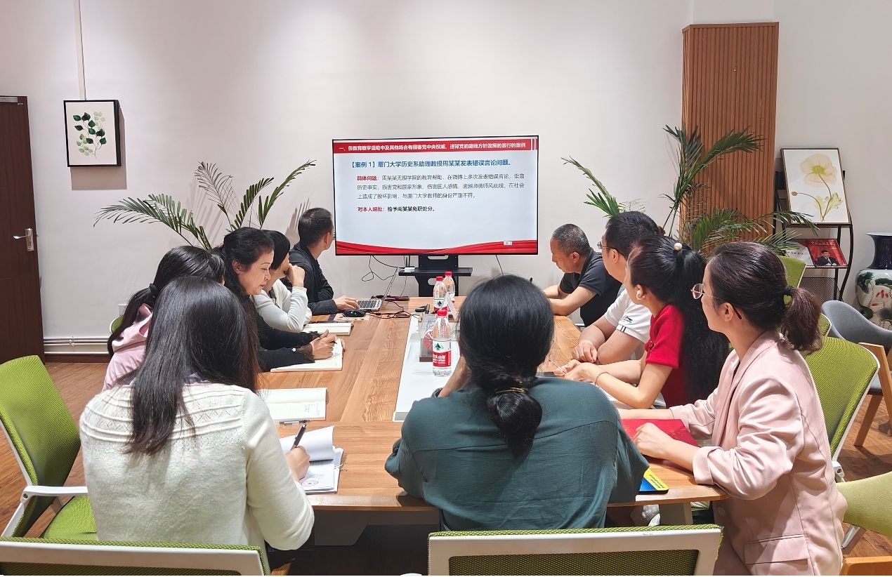 其次,结合实际案例,参会人员逐一深入学习了违反准则的典型案例和惩处措施,再次加深了对准则的认识。在学习的过程中,结合机关实际工作内容,参会人员也开展了充分的研讨,分析可能存在的风险点,提醒自己时刻自重、自省、自警、自励。自觉做以德立身、以德立学、以德施教、以德育德的楷模,维护教师职业形象,提振师道尊严。