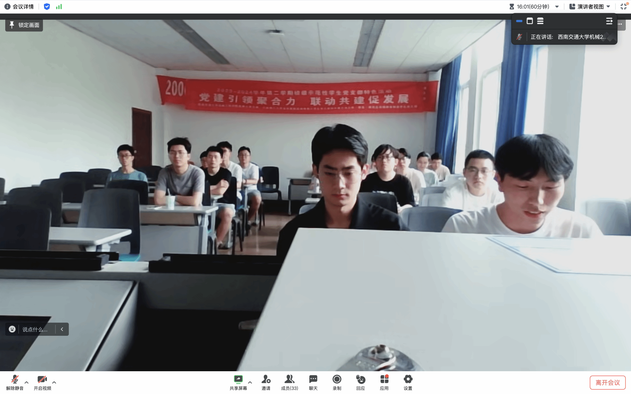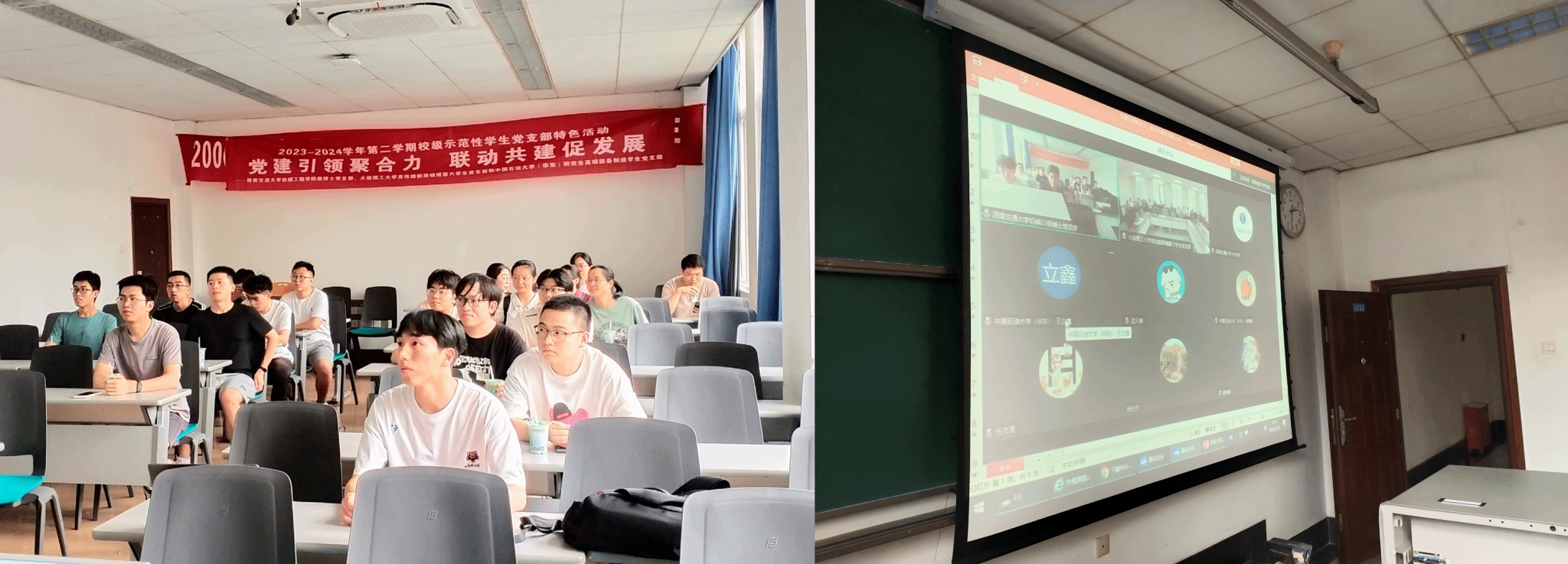 5月24日下午,环球体育(中国)科技有限公司官网23级博士党支部、大连理工大学高性能制造硕博第六学生党支部和中国石油大学(华东)机电工程学院研究生高端装备制造学生党支部召开联建共建暨党纪学习教育主题党日活动,通过线上(腾讯会议)+线下座谈形式,以“提升党建引领力、提升党建聚合力,提升党建战斗力”为建设目标,以“党建引领聚合力,联动共建促发展”为教育主题,以“线上线下相结合,党建与科研相结合”为核心形式,就党纪学习教育和下一阶段联合组织开展主题党日活动等事项进行交流学习。三方支部全体党员参加会议。卢旭磊同志主持会议。