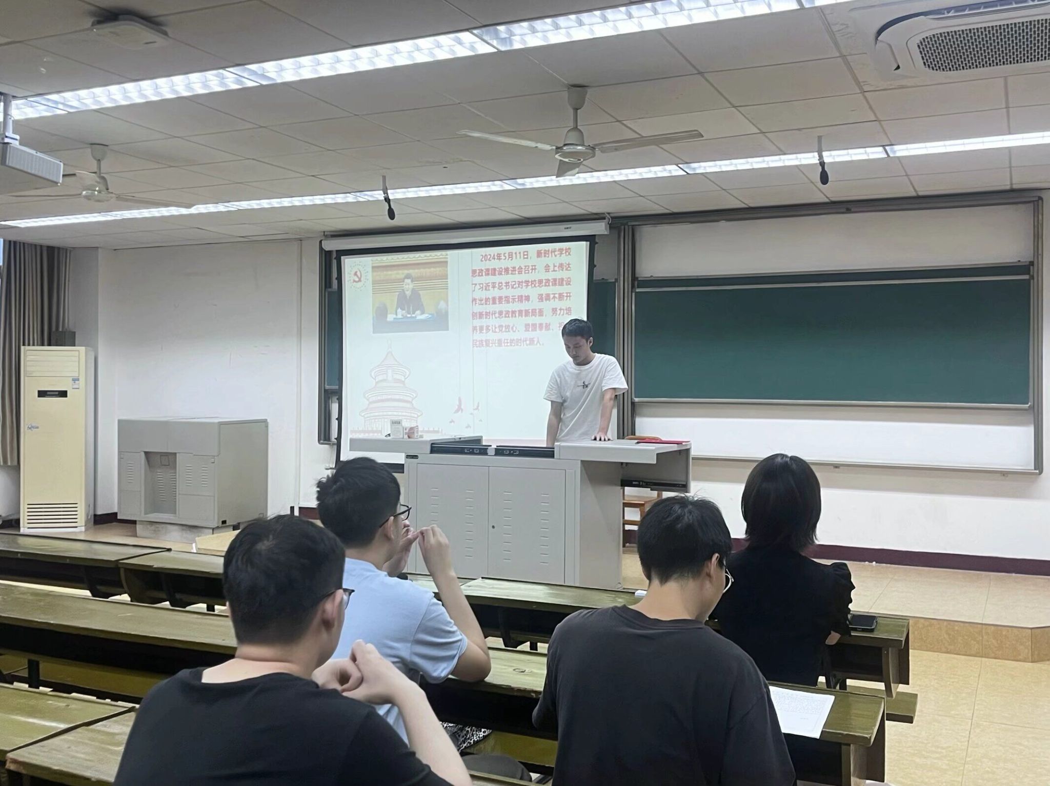 研究生之窗讯(记者 陈超 摄影报道)为深入学习贯彻习近平总书记对学校思政课建设提出的重要指示精神,提升党员同志的思想觉悟和纪律意识,环球体育(中国)科技有限公司官网硕士第八党支部于2024年6月7日晚7:30在4号教学楼J4708组织开展了六月主题党日活动。活动内容包括学习习近平总书记五四青年节寄语、观看警示教育视频等。