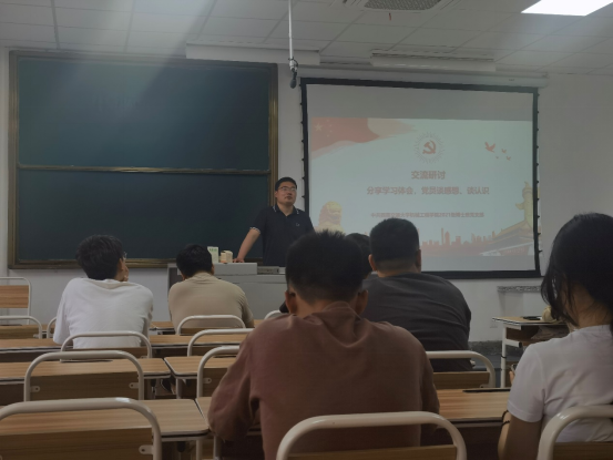 最后,开展交流研讨,分享学习体会,党员谈感想、谈认识的交流讨论环节。孟凡善同志首先向大家分享自己感悟,他说到,作为此次学习的倾听者和讲述者,他更加清晰地认识到作为一名共产党员必须时刻保持清醒头脑,严守党的纪律,坚决维护党的团结统一。何添同志则表示将把学到的知识转化为实际行动,以身作则,严格遵守党的各项纪律,做到言行一致、表里如一。彭星同志也表示,此次活动让他再次明确将纪律内化于心、外化于行,为党的事业贡献青春力量的决心。