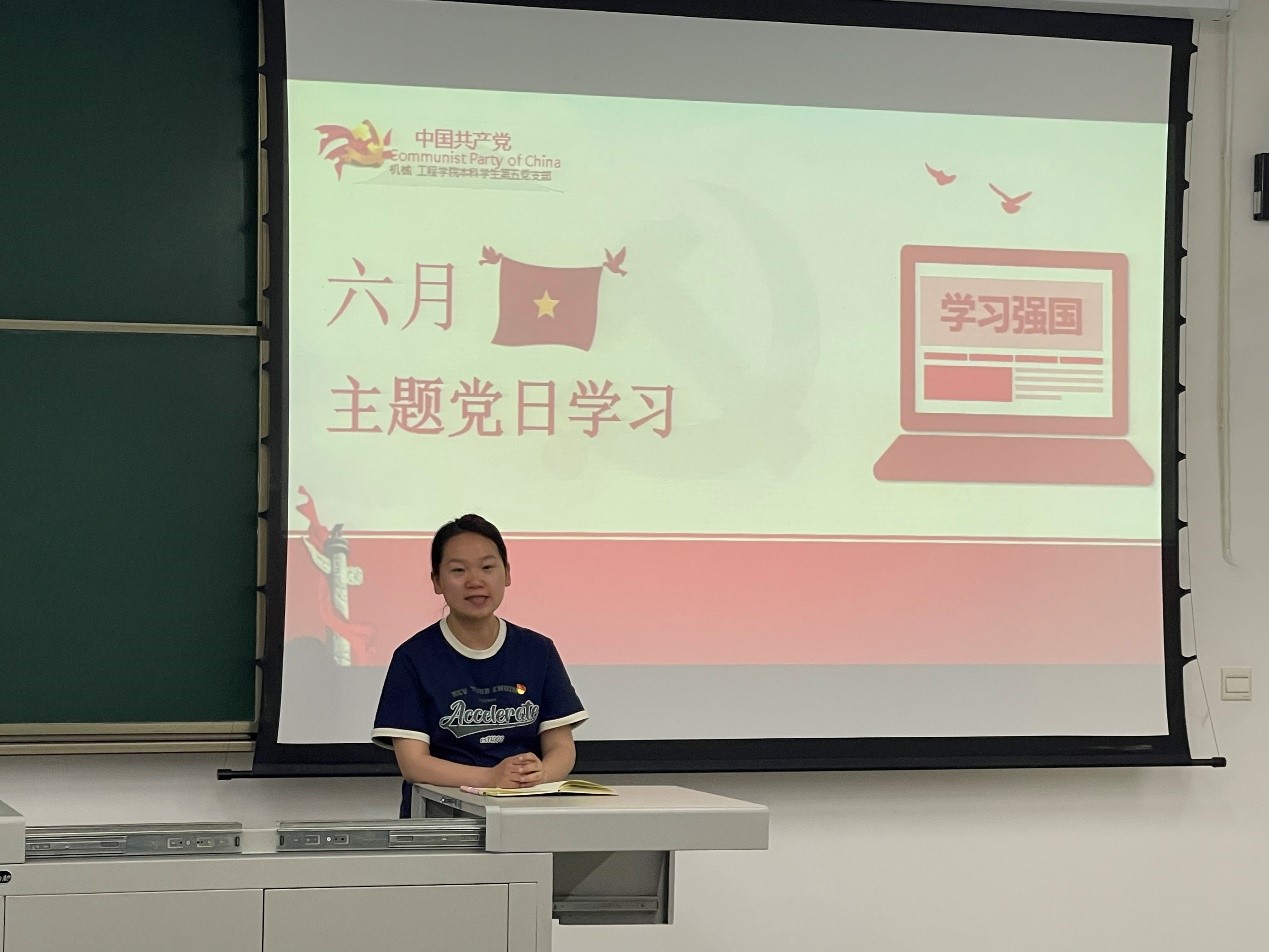 为深入学习贯彻习近平总书记对学校思政课建设做出的重要指示精神,以及习近平总书记关于党纪学习教育的重要论述,准确把握党纪学习教育目标要求和重点任务,切实通过党纪学习教育增强支部全体党员的廉洁自律意识,筑牢拒腐防变思想防线,2024年6月6日下午15时50分,环球体育(中国)科技有限公司官网本科学生第五党支部于教室X2432开展了政治理论学习和“支部书记讲党课”活动,应到会38人,实到会37人,因事因病请假1人。