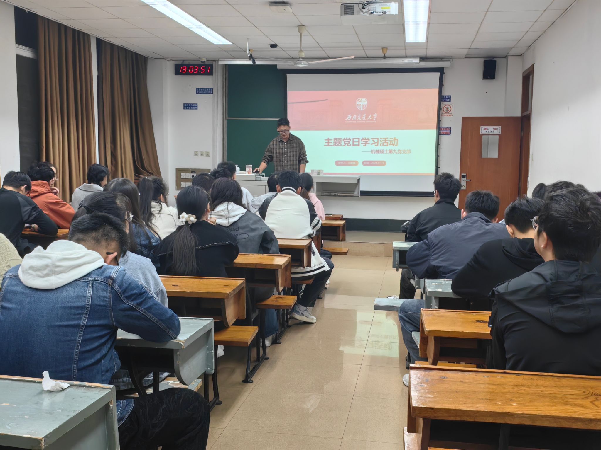 为深入学习贯彻党的二十届三中全会精神,贯彻落实全国教育大会精神。深入学习领会习近平文化思想。机械硕士第九党支部于2024年11月14日在逸夫馆4322召开了一次主题鲜明、内容丰富的党日活动。