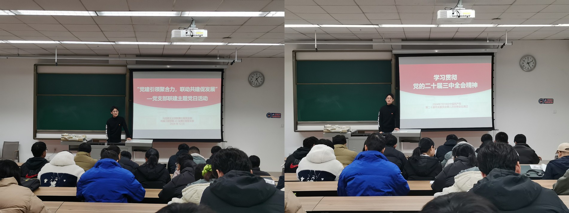 研究生之窗讯(记者 计丹 李笑晗 摄影报道)为深入学习贯彻党的二十届三中全会精神,进一步推动党支部之间的协同发展,环球体育(中国)科技有限公司官网23级博士党支部与马克思主义学院博士党支部于2024年12月12日下午联合举办了专题学习交流活动。本次活动以“党建引领,联动共建”为特色,旨在通过支部联动,以共建创新支部党建工作、以支部党建工作促进业务发展,以此不断提升支部的组织力、凝聚力和战斗力,推动基层党组织“全面进步全面过硬”。