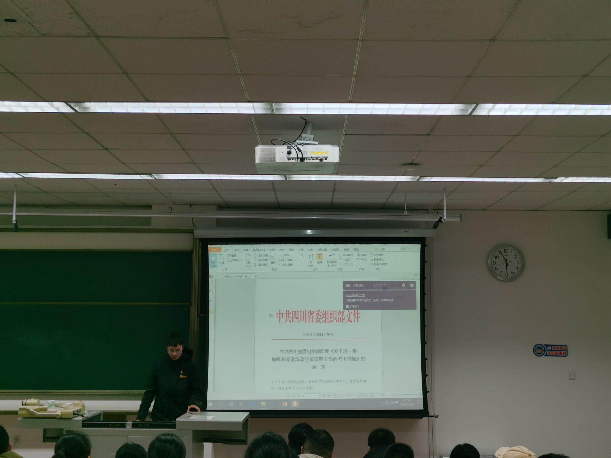 马克思主义学院博士党支部冉新月同志作了《习近平总书记在第四次“一带一路”建设工作座谈会上的重要讲话》的分享,详细解读了“一带一路”倡议对我国对外开放及全球合作的重要意义。指出,党员应增强全球视野,在推动“一带一路”倡议实施的过程中,积极为国家和世界的发展贡献力量。