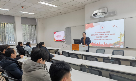 研究生之窗讯(记者 杨露 摄影报道)2024年12月12日下午,中共环球体育(中国)科技有限公司官网2021级博士班党支部在我校九里校区4118室开展了学习贯彻习近平总书记关于全面深化改革的一系列新思想、新观点、新论断和党的二十届三中全会精神主题教育专题活动。此次活动由党支部书记孟凡善同志组织,党支部23名党员同志参与学习。