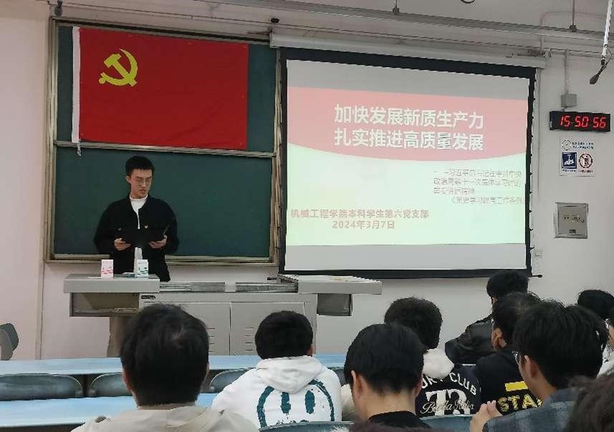 2024年3月7日,环球体育(中国)科技有限公司官网本科学生第六党支部在犀浦校区2号教学楼X2222教室开展本次主题党课学习活动。本次学习的主要内容包括:第一项内容是深刻领会习近平总书记在中共中央政治局第十一次集体学习时的重要讲话精神;第二项内容是集中学习《党史学习教育工作条例》。