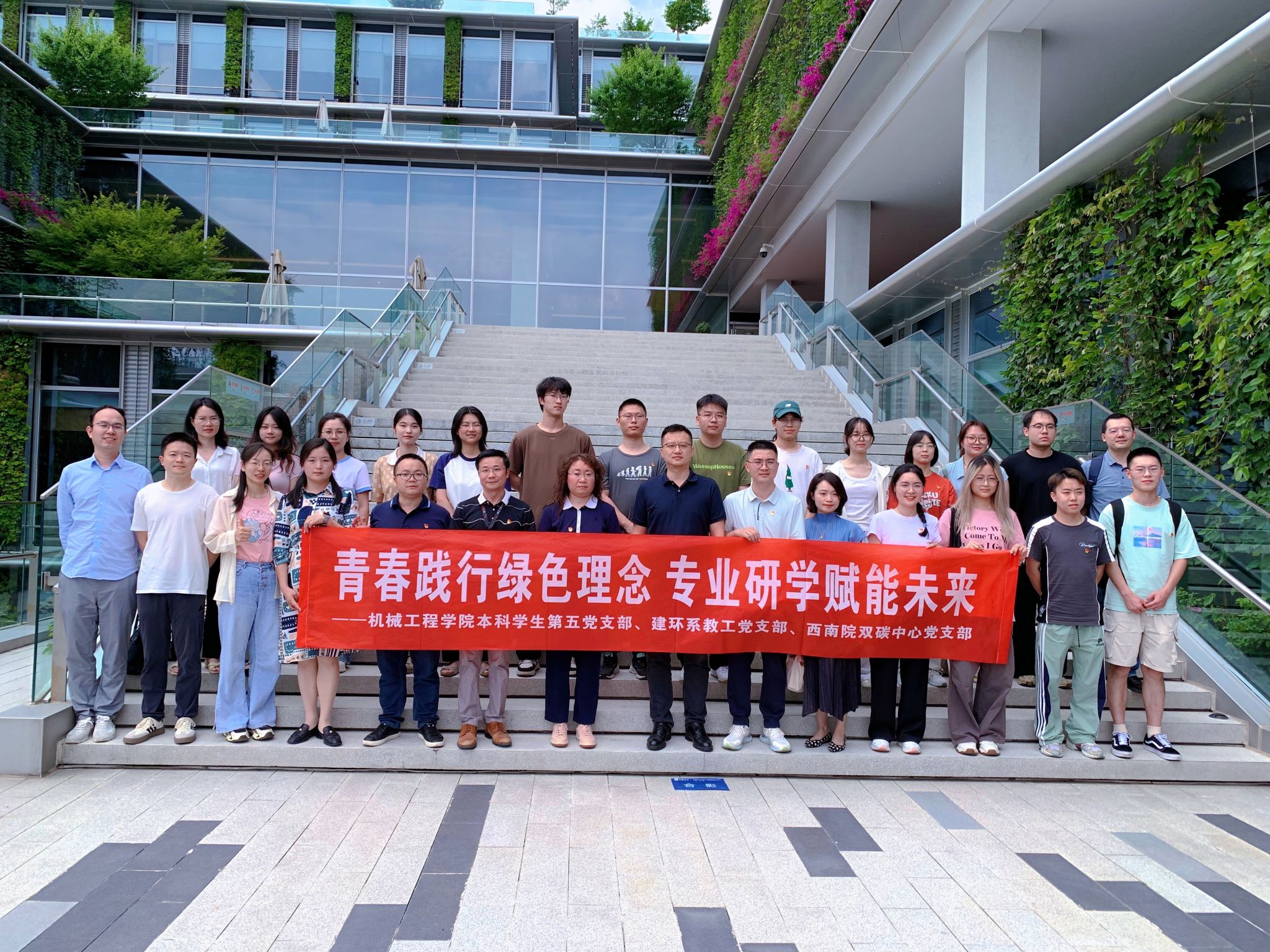 5 月 29 日,支部联合建环系教工党支部、西南院双碳中心党支部,赴中国建筑西南设计研究院有限公司滨湖设计总部开展 “近零碳建筑解码” 主题研学。