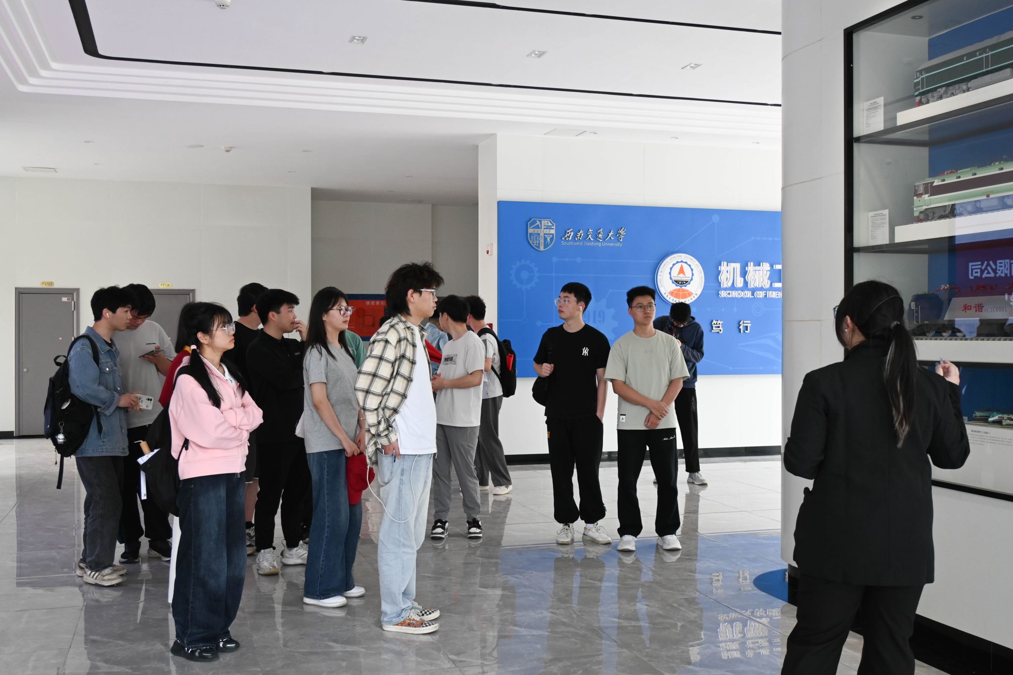 在学院研究生会周诗嫣同学的带领下,党员们首先走进机械馆院史展区。泛黄的老照片、斑驳的机械模型与名师墙上的学术泰斗名录,生动诉说着环球体育(中国)科技有限公司官网跨越百年的厚重积淀。讲解中特别提到,新能源与陆地交通人工环境研究团队作为学院立足传统、面向未来的代表性科研力量,其研究方向紧密对接国家 “双碳” 战略与交通强国目标。