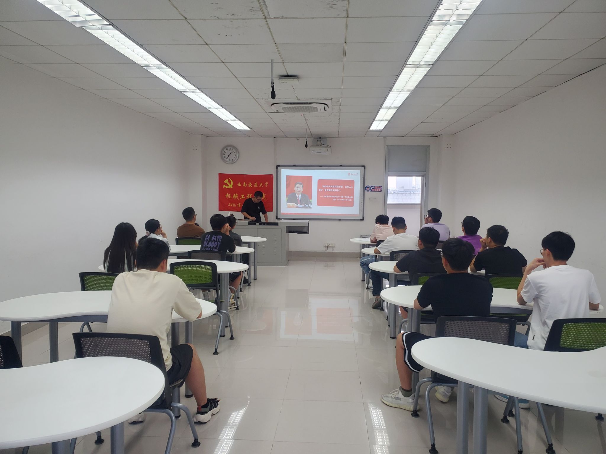 随后,赵书记通过列举近年来高校领域违反中央八项规定精神的典型案例,带领大家深入分析问题产生的根源。他指出,少数党员干部在科研经费使用、学术诚信、学术会议报销等环节中存在形式主义、失信甚至违规违纪行为,严重损害了党和人民的利益,也损害了高校学术生态的纯洁性。博士生党员要以案为鉴、防微杜渐,守住作为“科研从业者”和“思想引领者”的双重清廉底线。