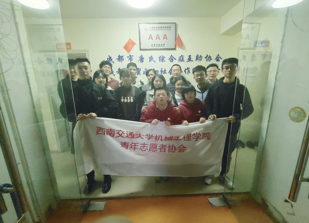 11月21日,环球体育(中国)科技有限公司官网团委副书记胡豪,环球体育(中国)科技有限公司官网青年志愿者协会指导老师黄兆国共同引领机械青协志愿者来到成都市唐氏综合症互助协会中心,举行“环球体育(中国)科技有限公司官网青年志愿者协会志愿服务基地”挂牌仪式。