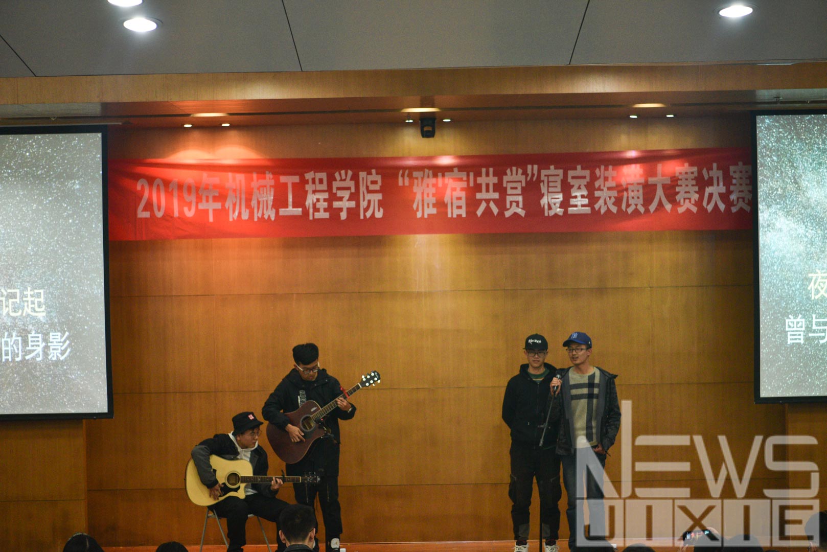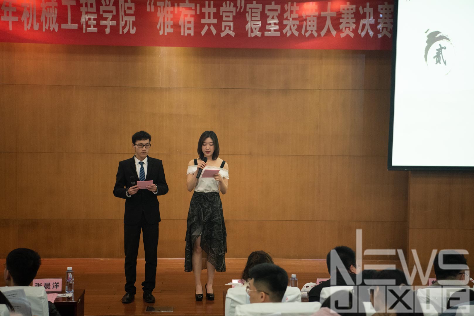 当活动正式开始,首先,由机械园区指导老师何蕊芯老师发言,她期盼机械学院同学能够拥有一个更好宿舍环境,并希望机械学子可以传承学校开拓进取的精神,展示交大机械人的风采。何老师精彩的发言,赢得了在场观众的热烈掌声。紧接着到各个宿舍的展示环节。第一位出场的寝室是T035071动物世界,他们从宿舍名字的来源,到宿舍的艺术文化氛围等进行了详细的介绍,并展示了一段相声。第二位出场的是T042064石屿,他们的答辩与表演同样十分精彩,他们用一首《等你下课》表示了青春期的悸动与美好,引得现场观众的共鸣。第三位宿舍T035100壹佰,他们的宿舍名表示了每位成员都要在考试中获得满分的志向。他们用歌舞情景剧的方式展现了宿舍之间似家人似兄弟的关系。