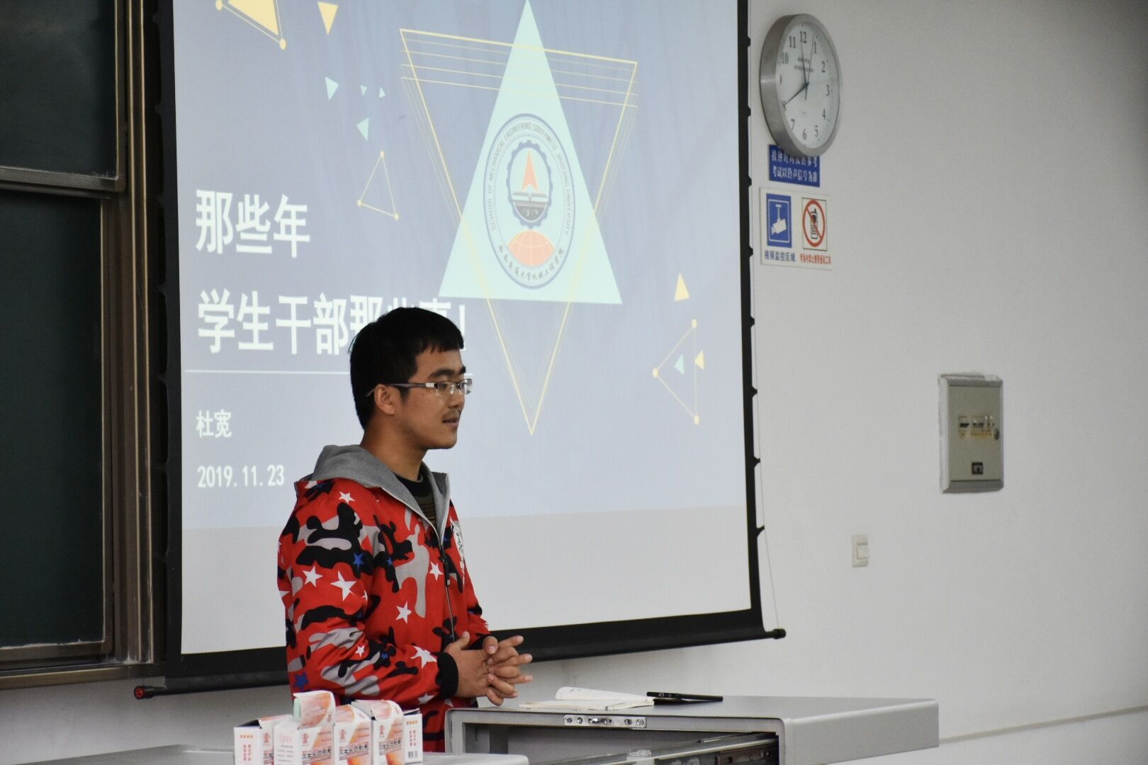 最后由杜宽学长发言,他本科期间曾担任13级辅导员助理,机械工程学院就业工作室成员,学校招就处对外联络科学生助理团队负责人,2018级机械硕士9班班长,机械工程学院研究生会副主席。杜宽学长通过自己的求学经历,告诉同学们要懂得取舍。