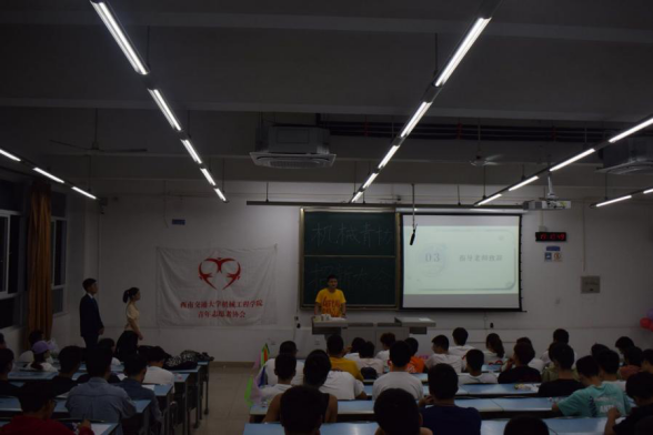 活动于19:00整开始,首先是由环球体育(中国)科技有限公司官网青年志愿者协会指导老师祁式展祁老师发言。祁老师面向2021级的新同学们介绍了机械青协的整体概况,让新同学们对机械青协有了一个整体的了解,并提出了机械学生的成功三步“进入西南交大—选择环球体育(中国)科技有限公司官网—加入机械青协”。