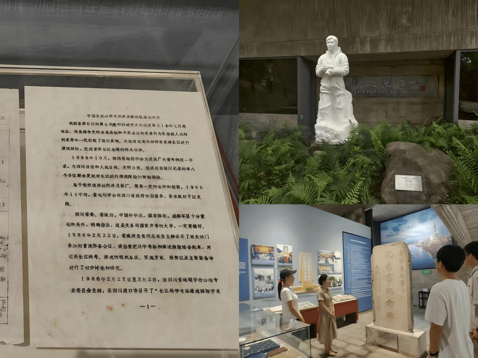 在实践活动开展前,团队成员们通过网络平台广泛搜集关于尧茂书同志的相关资料,初步了解其生平事迹及长江首漂的背景。随后,团队一行前往建川博物馆,深入参观尧茂书同志的遗物展览,包括“龙的传人”号橡皮艇、日记、衣物、相机等珍贵实物。这些实物无声地诉说着那段艰苦卓绝的漂流历程,为团队成员们还原首漂场景提供了最直接的证据。在参观过程中,团队成员们认真聆听讲解员的介绍,了解到尧茂书同志在上世纪 80 年代,面对装备简陋、水文资料匮乏、通讯断绝、后勤保障为零等重重困难,毅然决定独自漂流长江,其背后的动机不仅仅是“为国争光”,更有对自然的热爱、对未知的渴望以及摄影师的记录使命。通过网上搜集资料与博物馆实践学习相结合,团队成员们仿佛穿越时空,追寻着尧茂书同志的足迹,感受着当时漂流的艰难险阻。