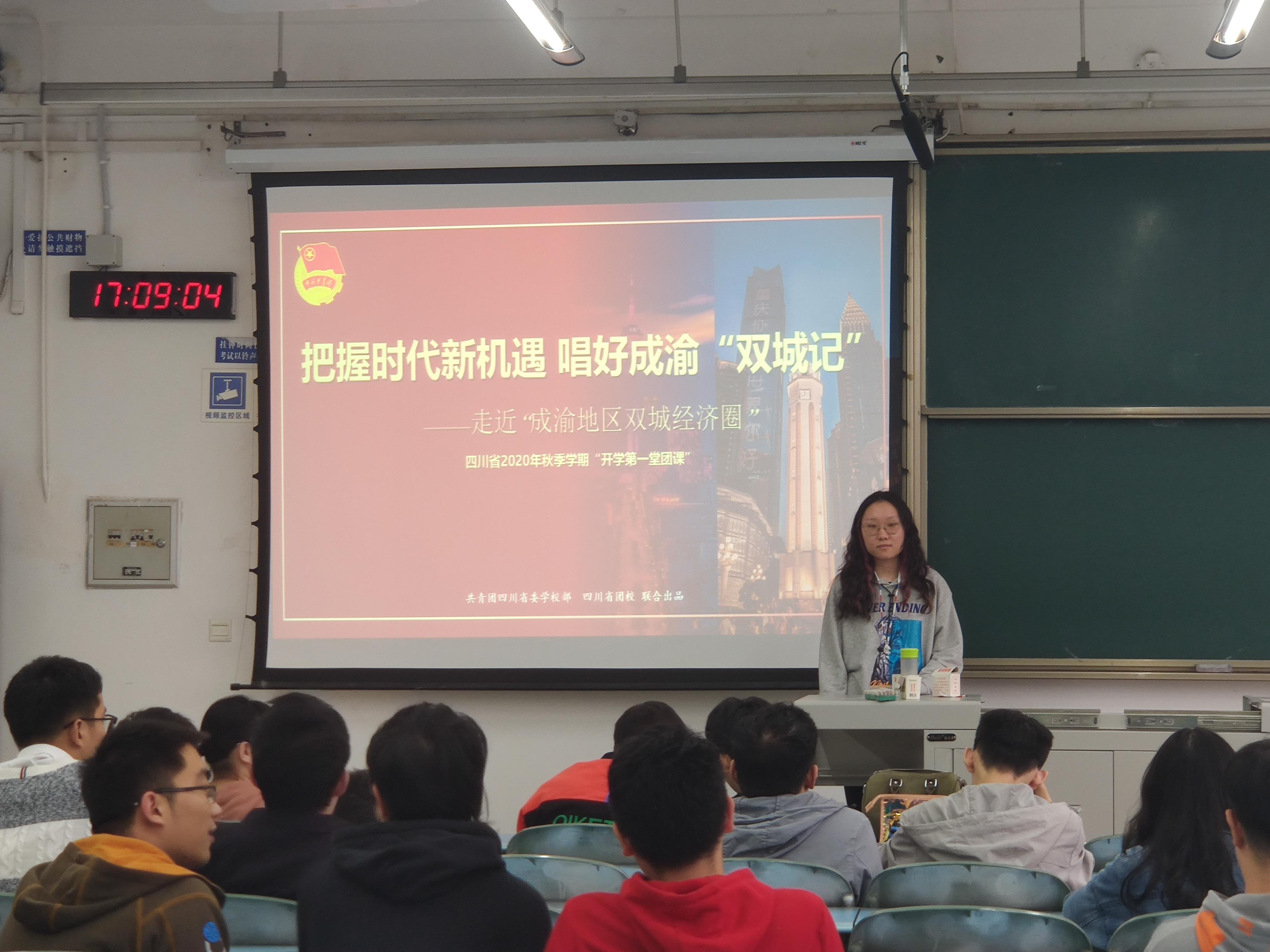 2020年10月12日,环球体育(中国)科技有限公司官网机械2017级1班和机械2017级2班在X2335联合开展了开学第一堂团课“带你走进成渝地区双城经济圈”主题团课。
