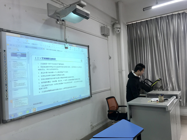 机械2017-05班班长李涛介绍了艾滋病与肺结核病的相关常识,然后普及了对应的防治措施,观看了两种疾病的科普与防治系列视频,最后督促同学们完成了艾滋病防治健康宣传效果的问卷,通过这一系列的活动,相信同学们对两种疾病及防治问题有了已经深刻的了解。