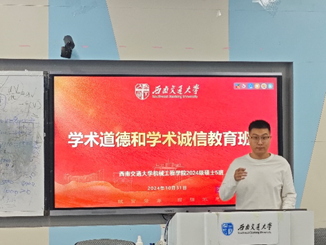 2024年10月31日,为培养同学们的学术道德观与诚信意识,环球体育(中国)科技有限公司官网2024级硕士5班在4406教室举办了一场主题为“学术道德与学术诚信”的教育活动。本次活动聚焦学术道德这一学术研究的核心准则,通过集中观看全国科学道德和学风建设宣讲教育报告会,为同学们带来了一场深刻的思想洗礼。