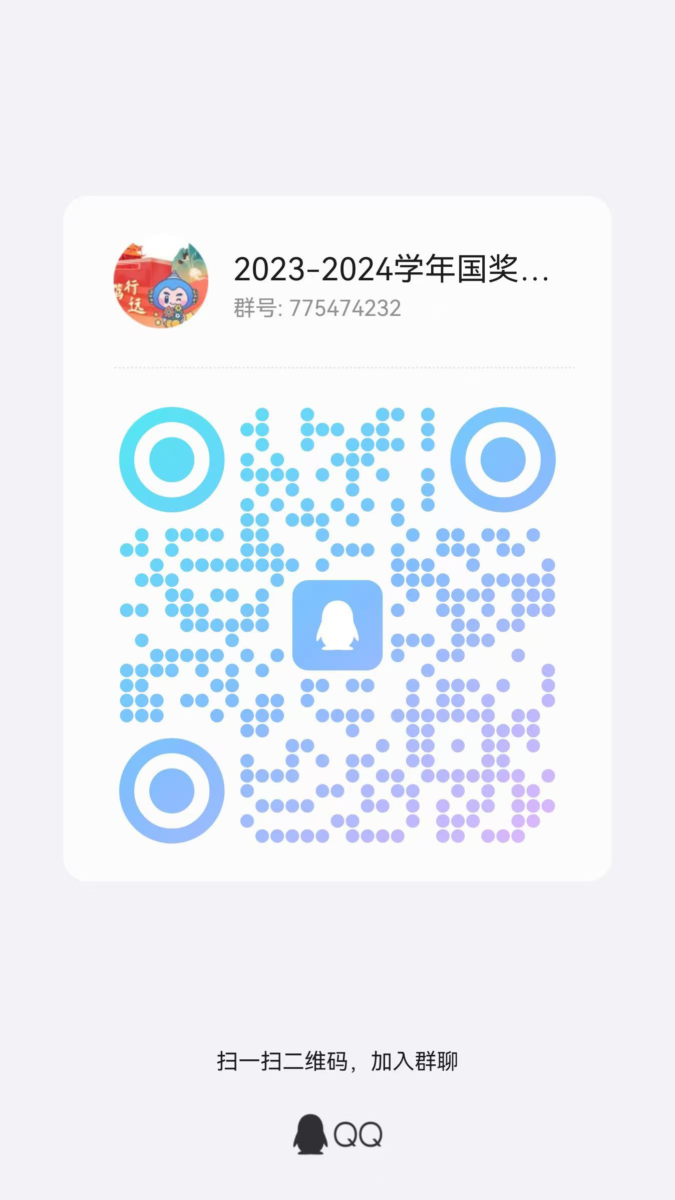 (四)答辩同学需于9月24日中午12:00前加入QQ群“2023-2024学年国奖答辩通知群(群号:775474232)”(如下图所示)。