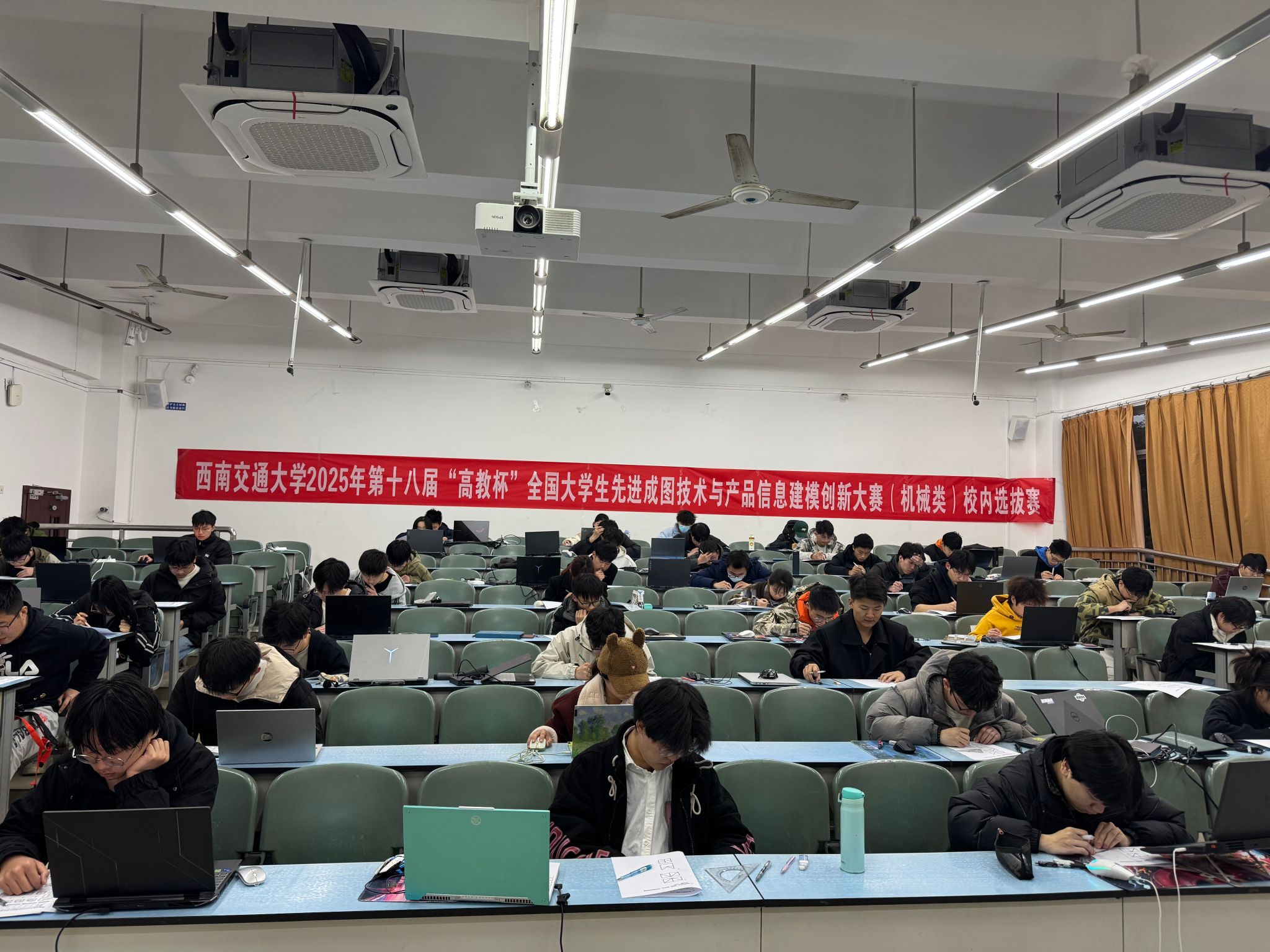 3月30日晚,西南交通大学第十八届"高教杯"全国大学生先进成图技术与产品信息建模创新大赛(机械类)校内选拔赛在犀浦校区成功举办。本次比赛旨在选拔优秀学子代表学校参加四川省赛,同时以赛促学、以赛促练,提升学生的工程图学素养、数字化设计能力与创新实践水平。