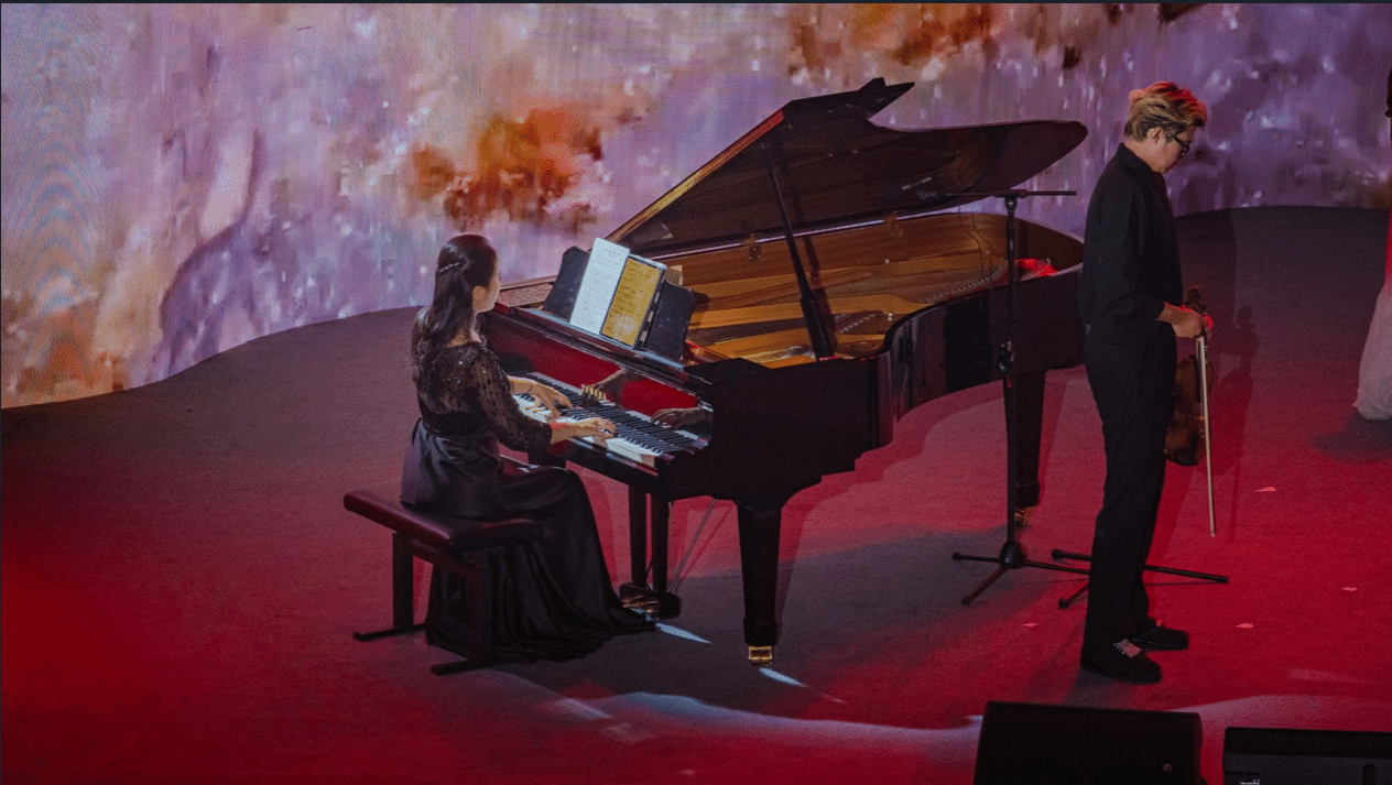 带着坚毅的眼神,踏着坚定的步伐,机械学院的师生们走上了舞台。“长城蜿蜒诉说着中华民族的坚韧不屈,泰山形状绵延着华夏人民的勇毅和果敢祖国……”,在钱院长和袁书记的朗诵中,环球体育(中国)科技有限公司官网演唱的《祖国慈祥的母亲》正式开幕,指挥人轻轻抬起的手下,同学们激昂的声音从胸腔喷涌而出,钢琴与古筝的结合,展现学院兼容并包的品质。“听吧新征程号角吹响”爱国歌曲的奏响,诉说着一代人对祖国的衷情。在悠扬激荡的旋律声中,环球体育(中国)科技有限公司官网的演出圆满落下帷幕。