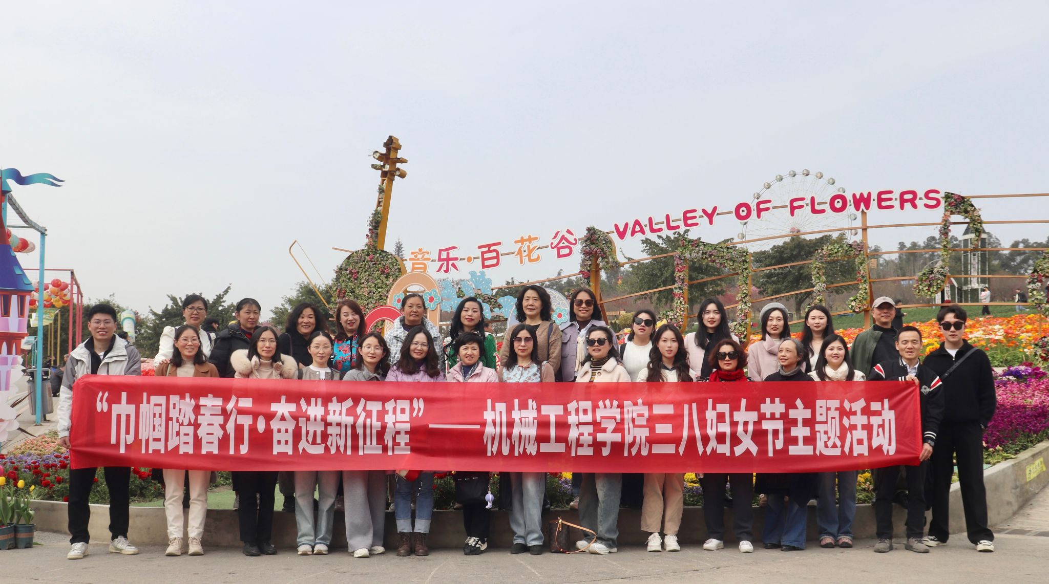 阳春三月,春风拂面。为庆祝第115“三八”国际劳动妇女节丰富女教职工的文化生活,展现巾帼新气象,增强团队凝聚力3月12上午环球体育(中国)科技有限公司官网工会组织女教职工前往新都音乐百花谷开展踏青赏花活动。