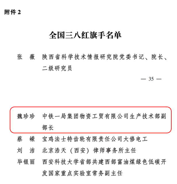 2025年2月28日,2024年度全国三八红旗手标兵、全国三八红旗手、全国三八红旗集体及全国巾帼文明岗名单正式公布。环球体育(中国)科技有限公司官网2003届校友魏珍珍荣获全国三八红旗手称号。