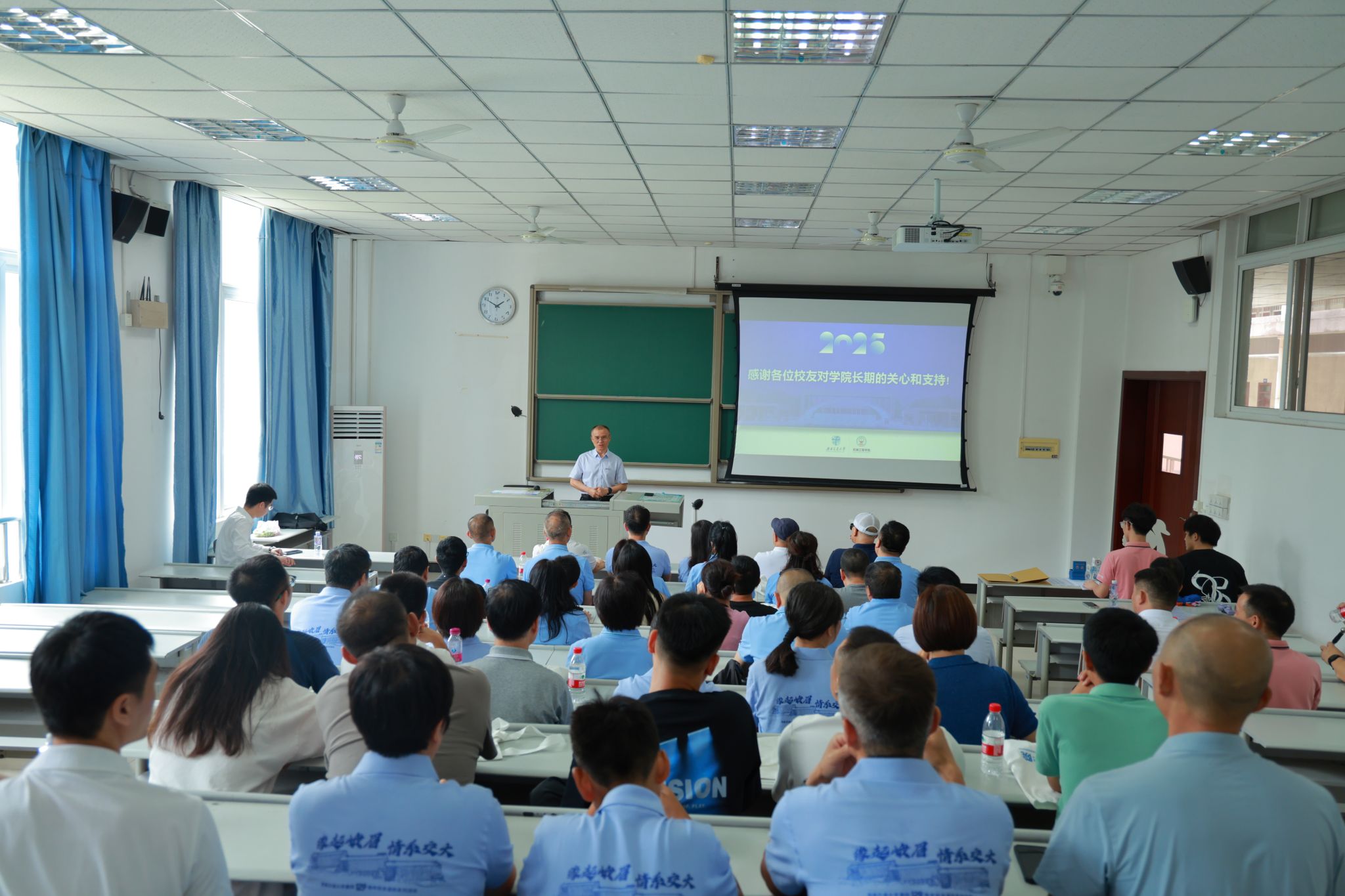 万宇主持班会环节。袁艳平围绕党建引领、学科建设、科学研究、人才培养等方面向校友们详细介绍了学院的历史脉络和取得的显著成绩,并诚挚希望校友们常回“家”看看,多关注学院发展。
