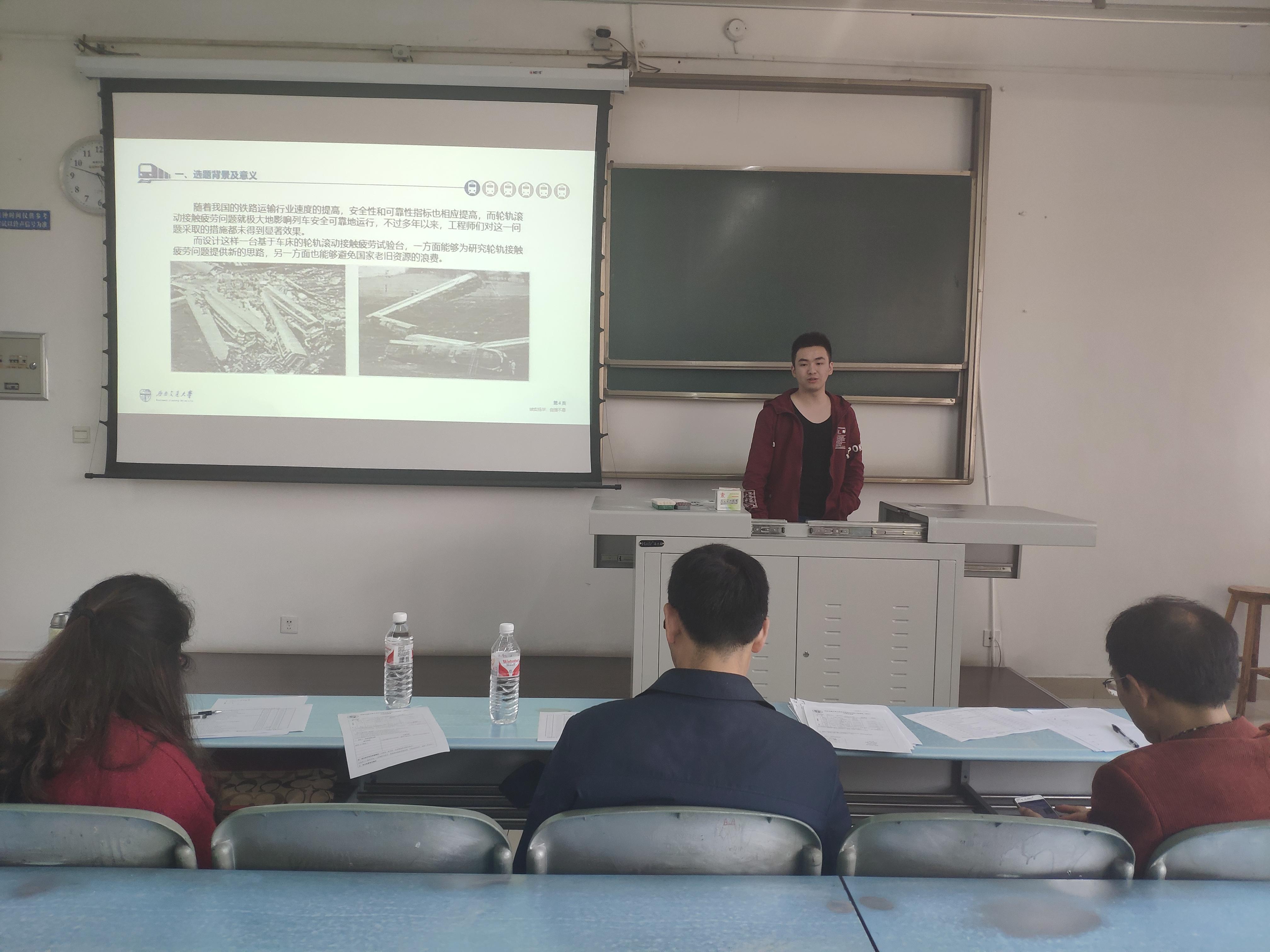 其他同学则提出了自适应老年人如厕助力器、蒜薹收割机械的设计、列车二级悬挂振动能量收集装置与实现、高性能鼓风机叶轮创新、高速列车内部的视景模拟等专业前线思路与创新。旋即,同学们在展示过程中论证了方案的可行性并阐述了解决问题过程中做的改进,制定出了新的解决方案。各小组在答辩的最后总结了自己的收获与不足。评委在听完同学们的讲述之后提出了深入的看法与建议,并对其中的不足之处提出了修正方案:一是注重实用性,选用简便的造型会给性能带来最大帮助;二是应该简化装置并降低制造成本,装置的使用价值还有待考察。