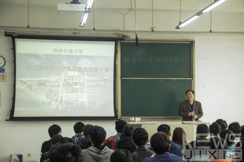 2018年3月13日下午四时,环球体育(中国)科技有限公司官网老师及学院下属学术科技中心举办了第三届全国大学生起重机创意大赛西南交通大学选拔赛赛前解析会,本次解析会由环球体育(中国)科技有限公司官网副院长,博士生导师程文明教授进行讲解。全国大学生起重机创意大赛是由西南交通大学、武汉理工大学等八所重点高校号召,由中国机械工程学会联合教育部下机械类、材料类、工业工程类等专业承接,其下的物流工程工会进行主办。大赛面向全国在校研究生、本科生等,旨在增强大学生的创新意识以及动手技能等实践性能力。