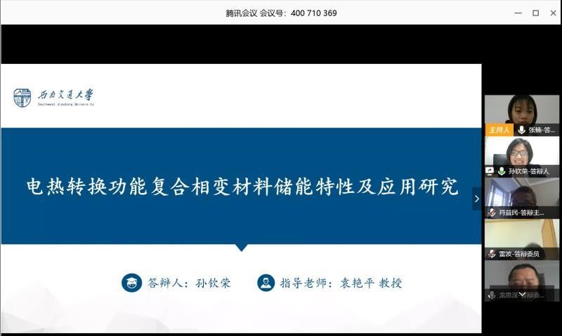 本次线上答辩由答辩人、答辩委员会、答辩人指导老师、机械分委员会秘书和旁听学生共30人参加,由答辩委员会主席、重庆大学肖益民教授主持。本次答辩遵照博士论文答辩要求及流程规范,机械分委员会秘书首先宣布委员名单,答辩委员会秘书介绍答辩人的论文评审意见,然后答辩人汇报题为《电热转换功能复合相变材料储能特性及应用研究》的博士学位论文工作,并逐一回答答辩委员会专家的提问,答辩委员会委员对整个答辩过程进行了深入的研讨并进行无记名投票。最后,答辩委员会主席宣布,答辩委员会全体成员经过无记名投票表决,一致认为该博士研究生的研究成果、学位论文和答辩达到了博士学位的要求,建议授予其工学博士学位。为了确保学位论文线上视频答辩的公开性、合法性和有效性,答辩委员会秘书遵照答辩工作流程,对答辩全程作答辩记录并留存线上答辩视频及相关照片。