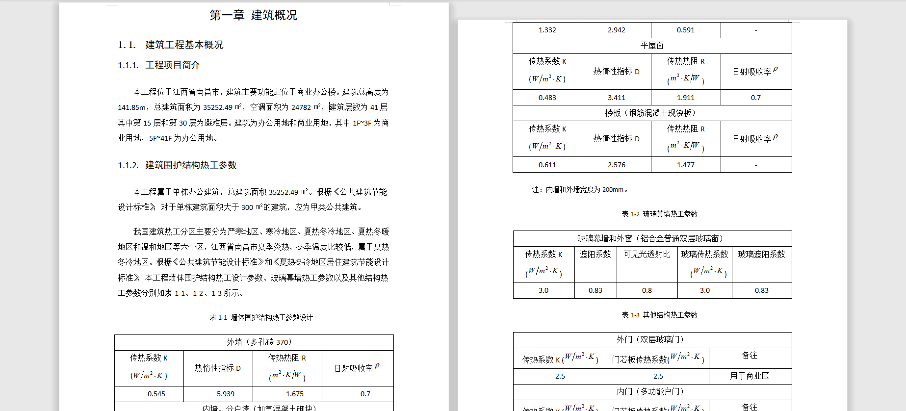 (1)建筑信息查询和建筑概况分析,通过对工程项目进行分析,确定建筑面积、空调面积以及建筑围护结构参数设计等。