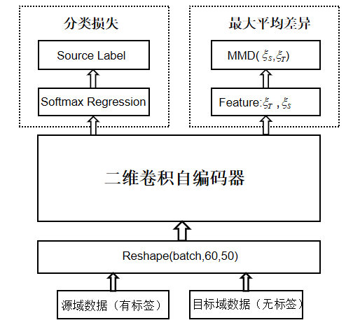 (b)基于二维卷积自编码器和最大平均差异的深度迁移模型