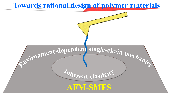 “道生一,一生二,二生三,三生万物”。这一来自《道德经》的古典哲学思想对高分子领域的学者仍有启发:高分子单链可视为“一”,高分子材料则是由无数个“一”堆积和组装而来。高分子单链性质与其宏观材料性质之间存在直接的关联。虽然目前仍难以建立这一关联,但我们相信,对高分子单链的深入研究必然会促进机械化学、高分子科学与工程领域的发展。基于原子力显微镜的单分子力谱(AFM-SMFS)是一种利用微小机械力操纵目标分子并对其进行针对性研究的技术。由于其可在液体、空气及真空环境下工作等优点,已发展成为研究高分子单链弹性的一种重要实验方法。我院崔树勋教授研究团队系统评述了近年来各研究组在研究高分子单链弹性的环境响应方面的进展。