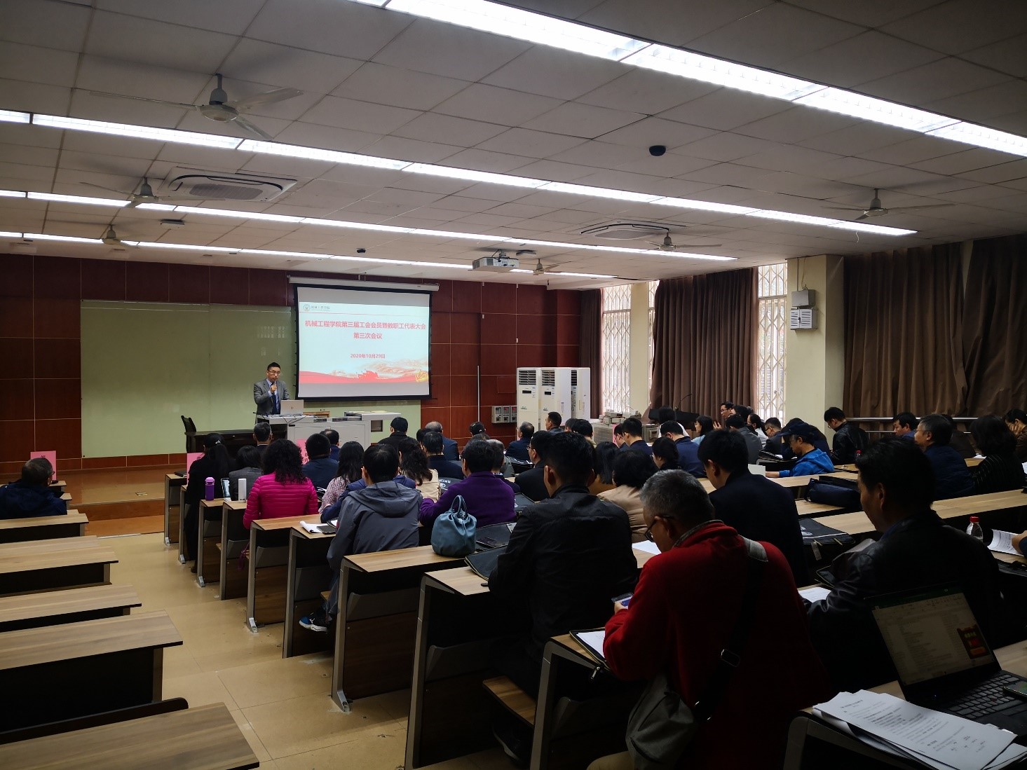 2020年10月29日下午,在九里校区逸夫馆4104,召开了环球体育(中国)科技有限公司官网第三届工会会员暨教职工代表大会第三次会议。出席会议的有学院双代会代表及特邀嘉宾。会议由学院党委副书记、纪委书记程军主持。