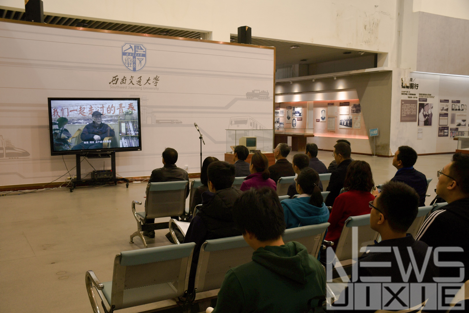 仪式开始后,出席者们一同观看了短片《我们一起走过的青春——追忆交大抗美援朝工程队》。在短片中,曾经是交大抗美援朝工程队成员的三位老人讲述了他们在交大的青葱岁月和当时抗美援朝的紧张形势。一位老先生说到:“当时有一天老师说不上课了,提出了国家在我校招募抗美援朝工程队的计划……这是完全自愿的。”尽管上前线十分危险,老先生和他的同学们也没有畏缩退后,而是全部报名参加工程队。他说:“这是国家的号召,我们必须响应,必须去。”他们的这份爱国心与责任感已经深深融入在了交大精神中,并将永远地在交大学子身上传承下去。