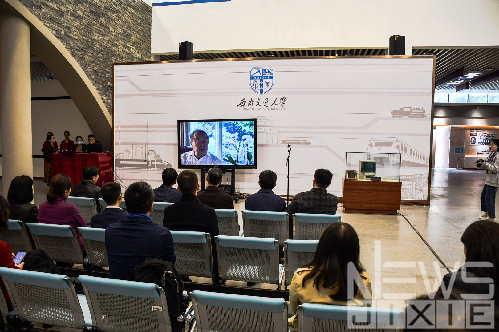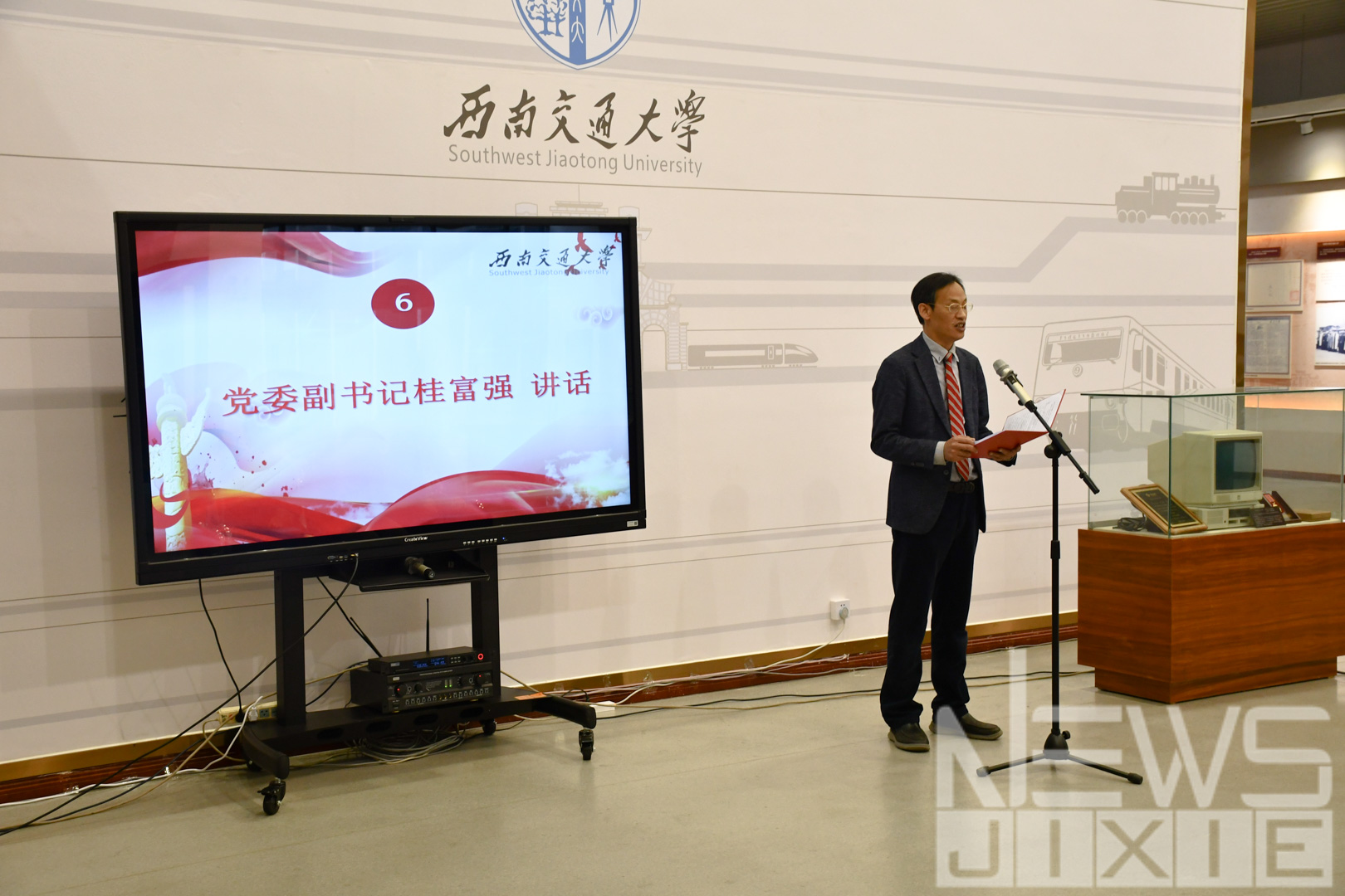最后,学校党委副书记桂富强讲话,他总结道,在新时代的大环境下,西南交通大学不仅要努力向前发展,还要积极传承老一辈校友的爱国精神,只有这样才能真正响应习近平主席构建人类命运共同体的号召,使我校跻身世界一流大学的行列。