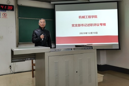 2020年12月10日下午,环球体育(中国)科技有限公司官网党支部书记述职评议考核在九里校区4404举行,党委副书记程军主持述职评议大会。